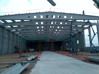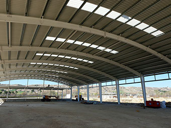 Abarcamos todos los trabajos necesarios: cimentaciones, explanaciones, estructura metálica o prefabricada, cerramientos de hormigón, cubiertas, carpintería metálica, albañilería, soleras, pavimento, albañilería, etc.