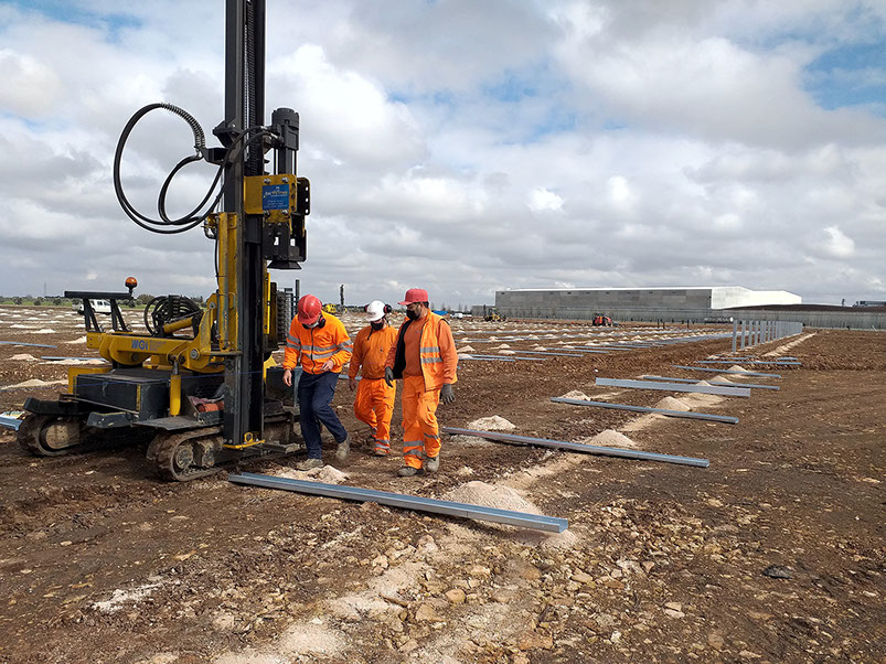 Para ello, hemos adquirido la maquinaria necesaria para desarrollar cualquier proyecto de principio a fin, sin depender de terceros, así como personal necesario para ello. Contamos con los recursos propios necesarios para ejecutar la obra civil completa de cualquier parque fotovoltaico, independientemente de la dimensión del mismo, desde movimiento de tierras, caminos, apertura de zanjas o canalizaciones hasta cimentaciones, losas, cunetas y drenajes, obra civil subestaciones, etc.