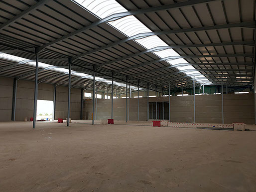 Abarcamos todos los trabajos necesarios: cimentaciones, explanaciones, estructura metálica o prefabricada, cerramientos de hormigón, cubiertas, carpintería metálica, albañilería, soleras, pavimento, albañilería, etc.