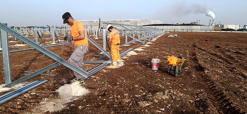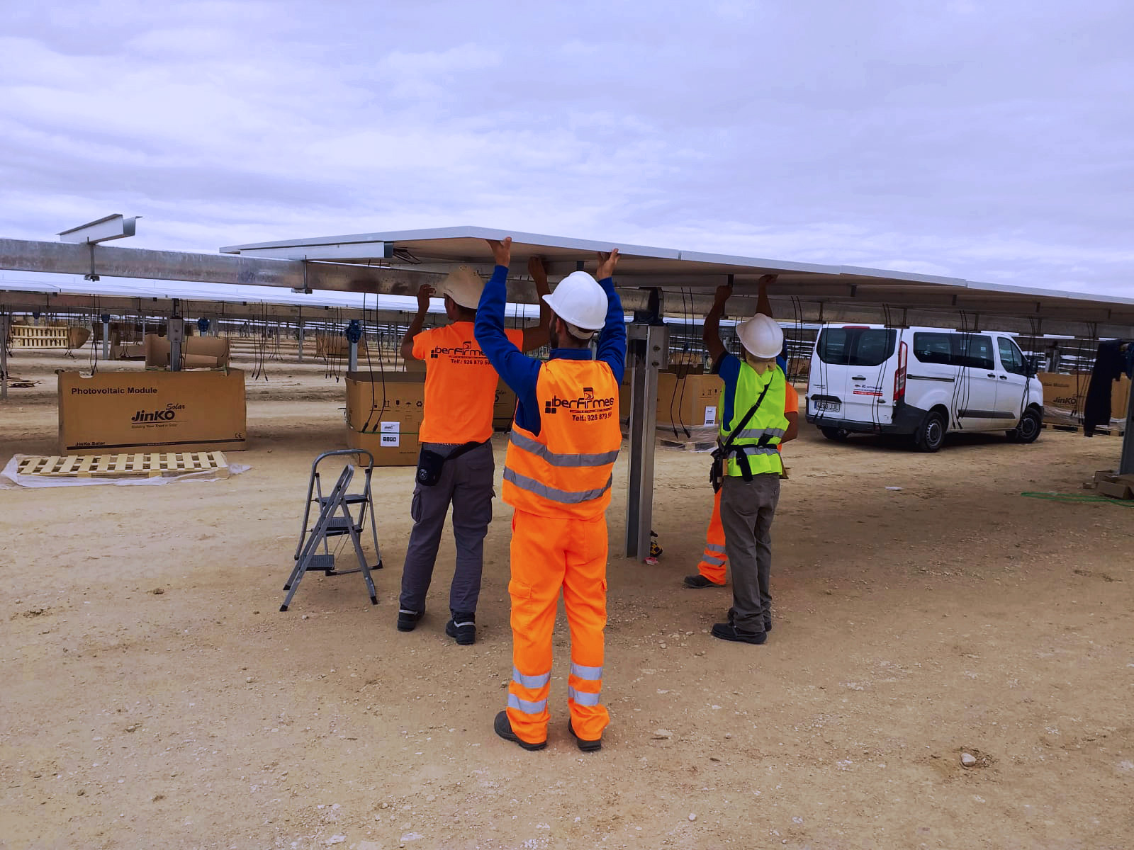 También disponemos de un equipo humano muy cualificado. Personal de obra y técnico con amplia experiencia en este sector. Capacitados para el montaje mecánico de estructura fija y seguidores o trackers y de módulos fotovoltaicos. Igualmente desarrollamos tareas de ingeniería y topografía; además de ejecutar instalaciones y canalizaciones eléctricas y de seguridad, cimentaciones, subestaciones, cunetas y drenajes.